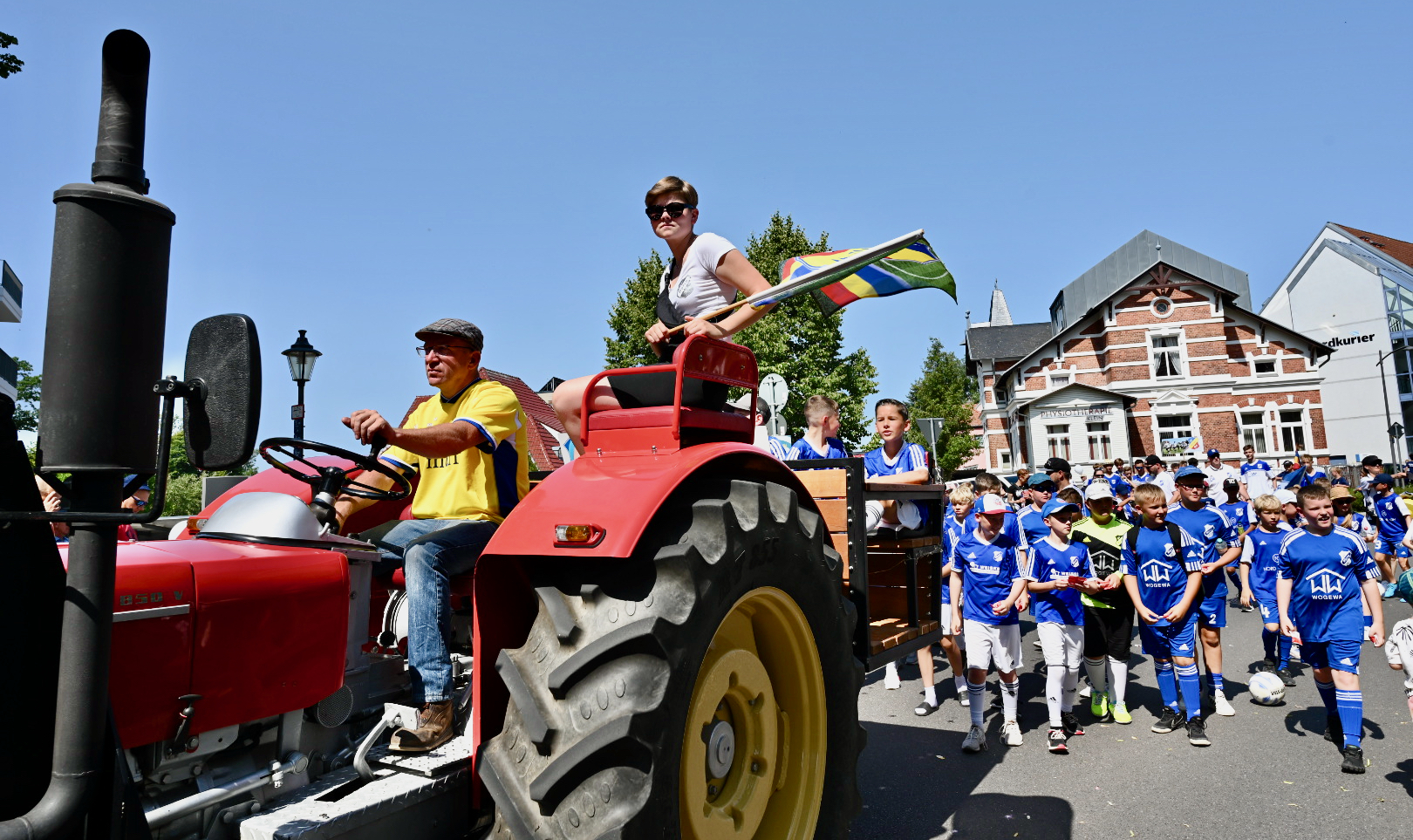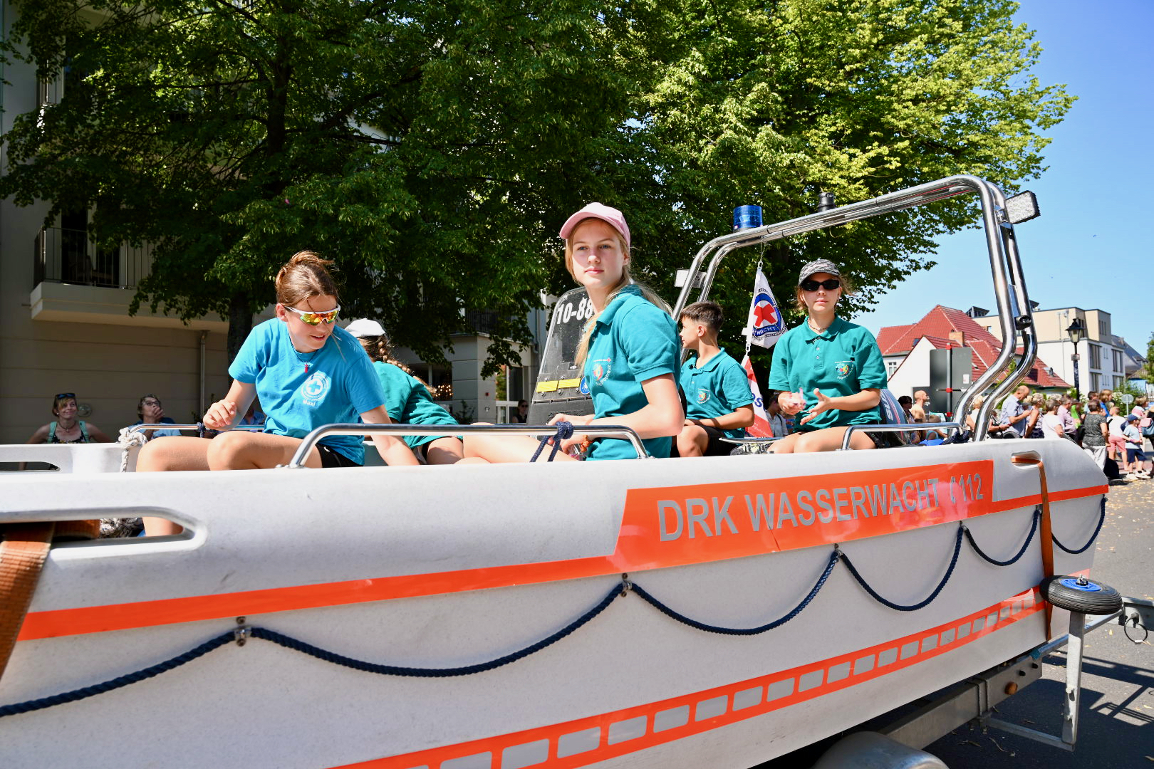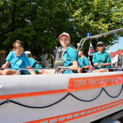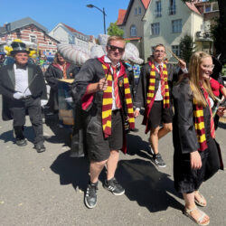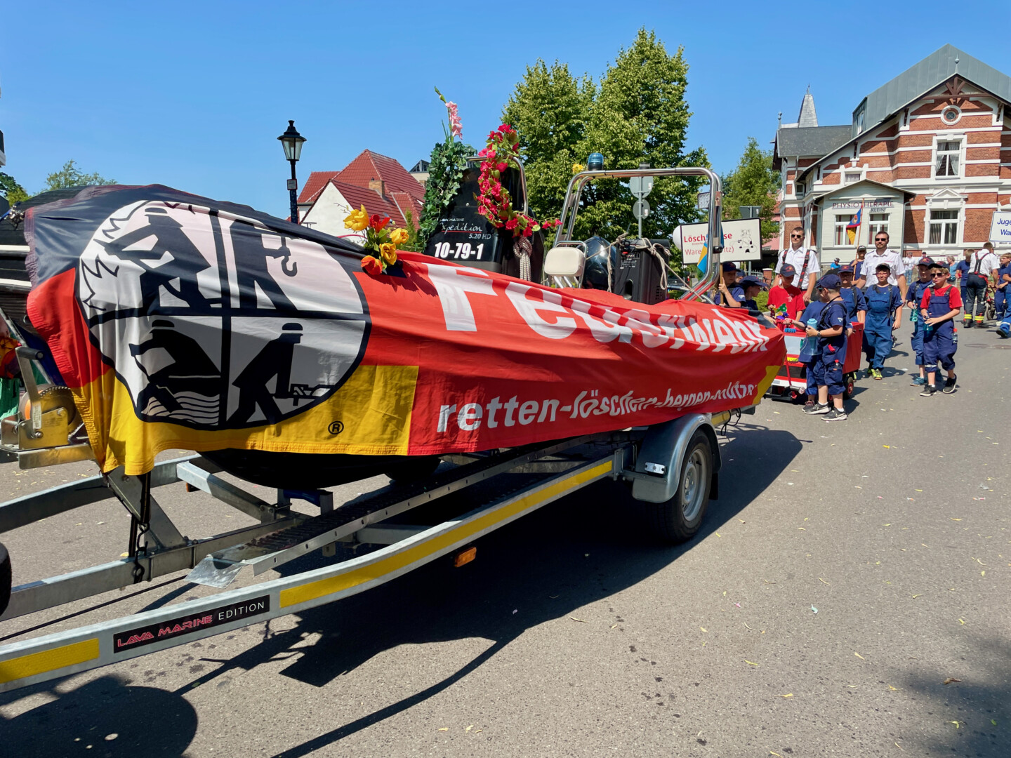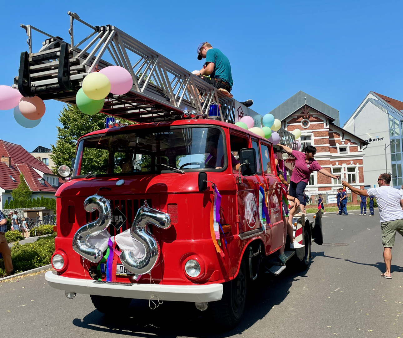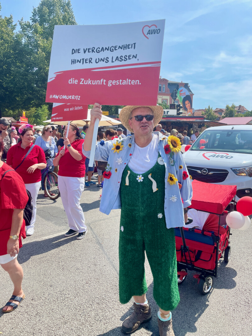 Fast 40 Unternehmen, Vereine und Verbände zogen heute bei brütender Hitze durch Waren und begeisterten die vielen Zuschauer am Straßenrand. Die Schattenplätze links und rechts der Fahrbahn waren heiß begehrt. Und auch wenn der eine oder andere Zuschauer versuchte, Vergleiche mit anderen Städten zu ziehen – wir machen’s nicht und sagen eindeutig: Es war ein toller Umzug.