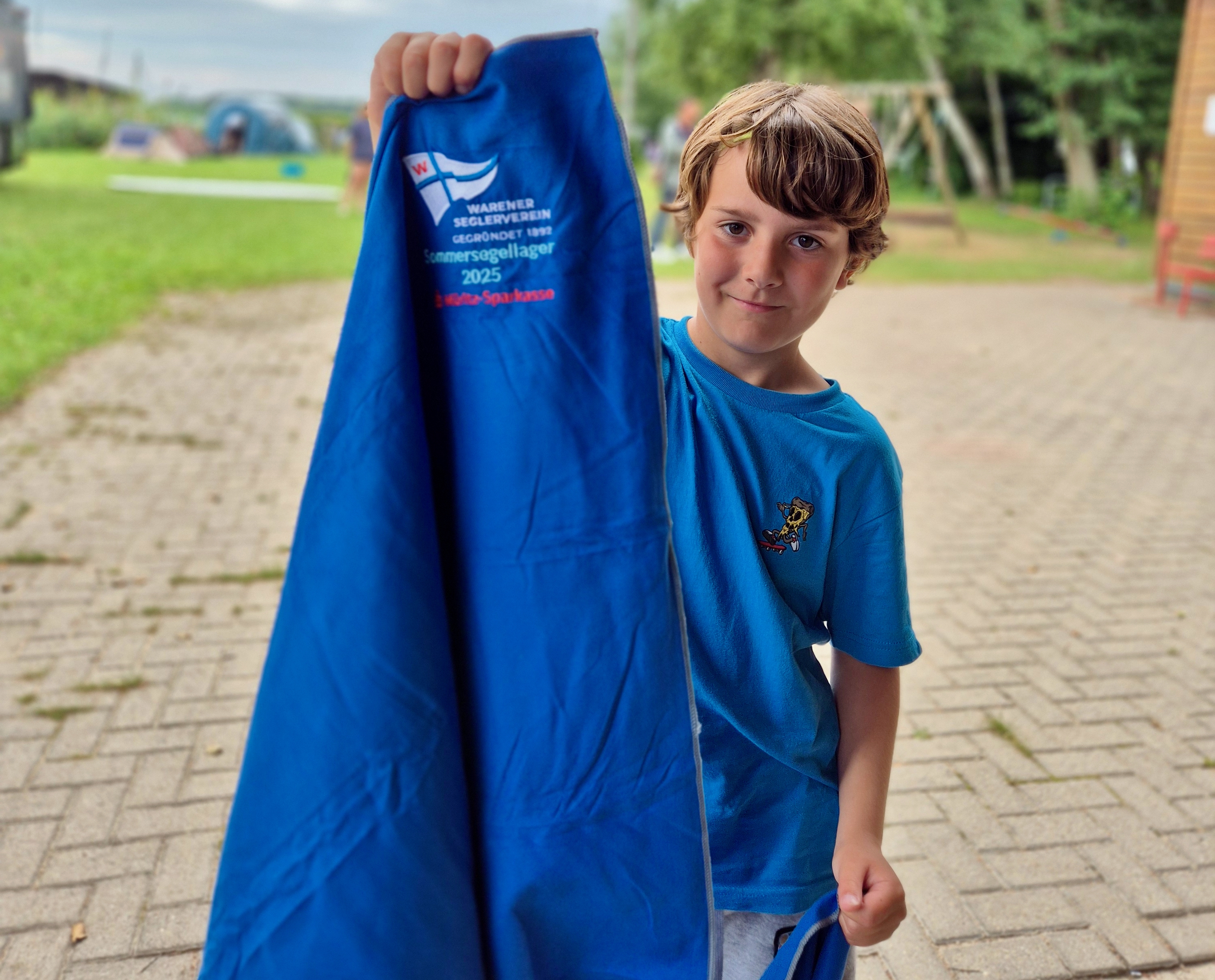 Zum Abschluss gab es noch für alle Kinder und Jugendlichen ein fettes Dankeschön in Stoffform: Ein hochwertiges Handtuch, beschriftet mit Vereinswimpel und Sponsor-Logo – spendiert von der Müritz Sparkasse. Damit kann man jetzt nicht nur ins Wasser hüpfen, sondern auch stilvoll wieder raus.