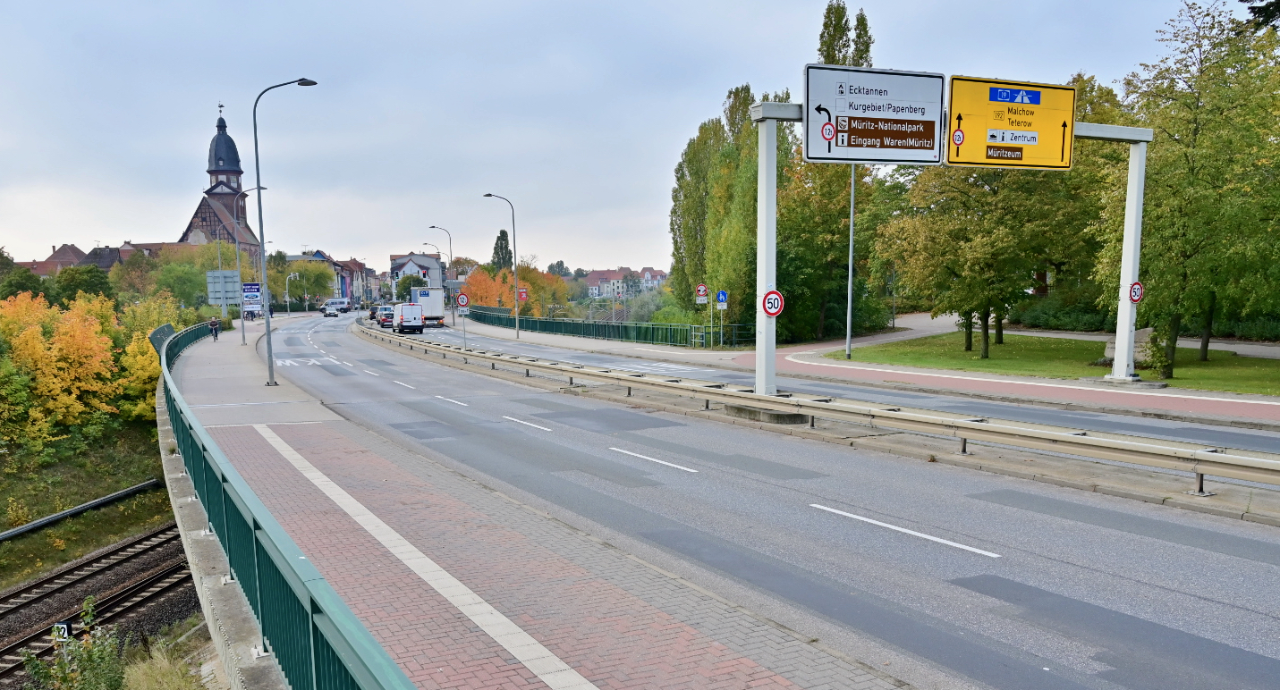 Wie berichtet, ist die 50 Jahre alte Brücke seit langem ein Sorgenkind, das Straßenbauamt Neustrelitz will sie ab Ende 2024 erneuern. Kostenpunkt rund 30 Millionen Euro. Den Großteil trägt der Bund, doch die Stadt soll für den neuen Rad- und Gehweg zur Kasse gebeten werden. Das konnten nach derzeitigen Schätzungen etwa 2,5 Millionen Euro werden, wenn Fördermittel in Höhe von 75 Prozent fließen, wie gehofft, bleiben für die Stadt noch etwa 600 000 Euro. Doch auch diese Summe ist den Stadtvertretern zu hoch und muss ihrer Ansicht nach gar nicht sein. Denn in den Planungen wird von einem 4,20 Meter breiten Weg ausgegangen, in den anderen Bereichen des Schweriner Damms sind’s nur drei Meter, die sich Radfahrer und Fußgänger teilen, ohne sich dabei ins Gehege zu kommen.