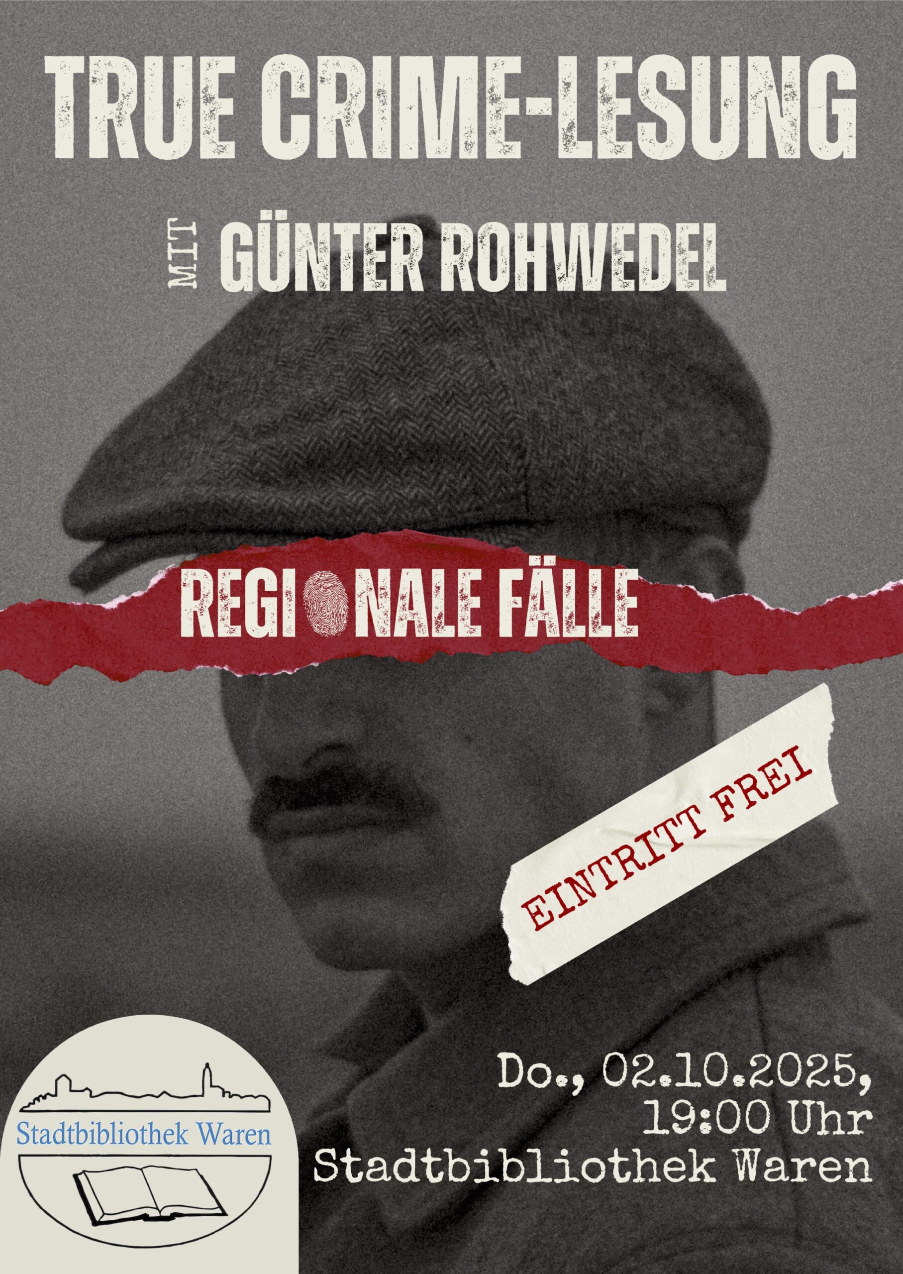 In der Stadtbibliothek Waren wird am morgigen Donnerstag, 2. Oktober, der ehemalige Kriminalist und Privatermittler Günter Rohwedel ab 19 Uhr aus seinem umfangreichen Erfahrungsschatz berichten. Mit einer beeindruckenden Karriere von 43 Jahren in der Ermittlungsarbeit, darunter die Aufklärung von Diebstählen, Erpressungen, Tötungsdelikten, sexuellem Missbrauch und Wirtschaftskriminalität, hat Günter Rohwedel zahlreiche spannende und erschütternde Fälle bearbeitet. Im Rahmen der Veranstaltung wird er Einblicke in lokale und regionale Kriminalfälle geben, die er als Ermittler hautnah erlebt hat.