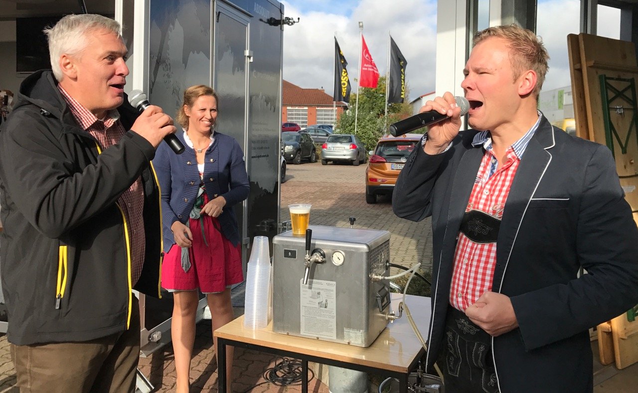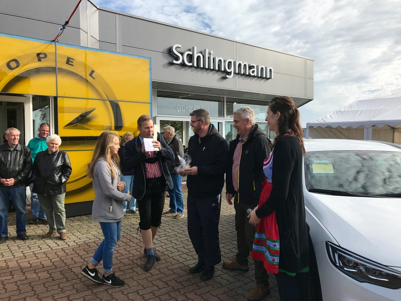„Auch wenn wir erst nächstes Jahr wieder mit einem neuen Wagen dran sind, wollten wir unbedingt her, denn bei Schlingmanns ist es einfach immer sehr familiär. Wir haben noch kein Fest versäumt“, erzählt ein Warener Ehepaar, das sich heute beim Oktoberfest des Warener Opel-Autohauses unterhalten lässt.