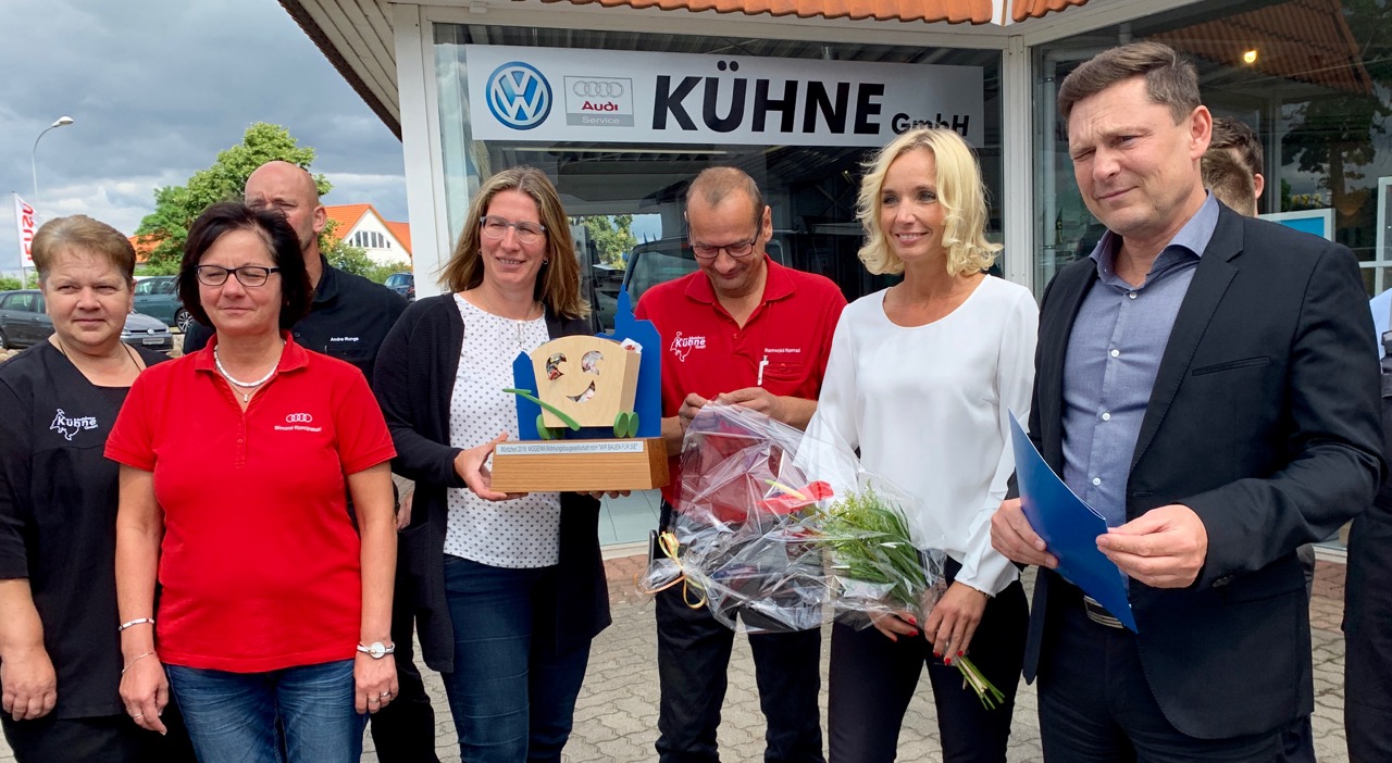Die Blumen des Vize-Bürgermeisters bekam allerdings nicht Chef Thomas Kühne, sondern seine Frau Susanne, die ebenfalls in leitender Position im Autohaus arbeitet. Schließlich, so musste Thomas Kühne zugeben, war sie es, die die Idee für den Auftritt der Firma beim Müritzfest hatte. „Ich bin ein großer Fan des alten T2 aus den 70er Jahren und des alten VW-Käfer. So kam die Idee, in diesem Jahr die Hippie-Zeit und Flower-Power wieder hervorzuholen und mit Schlagern durch die Stadt zu ziehen“, so Susanne Kühne gegenüber „Wir sind Müritzer“.