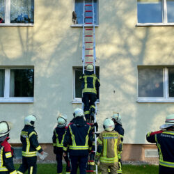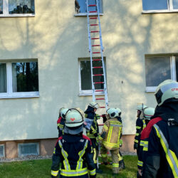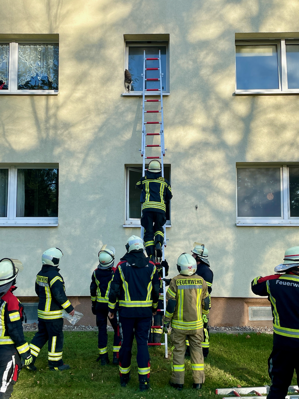 Erst heute früh haben wir einen Beitrag über die hohe Zahl der Feuerwehreinsätze in Waren geschrieben und darüber, dass die ehrenamtlichen Retter zu jeder Tages- und Nachtzeit zur Stelle sind, wenn jemand in Not ist. Das gilt auch für Tiere, wie sich heute Vormittag gezeigt hat. Aufmerksame Anwohner haben zuerst das Jaulen einer Katze gehört, später wurde sie entdeckt: Eingeklemmt in einem gekippten Fenster in der zweiten Etage eines Hauses in der Hans-Beimler-Straße. So hing das Tier offenbar mindestens eine Stunde. Der Mieter der Wohnung war zu diesem Zeitpunkt nicht zu Hause. Um die Katze, die keinen Mucks mehr von sich gab, zu erreichen, reichte den Feuerwehrleuten letztlich eine längere Leiter. Behutsam hob ein Kamerad die sichtlich geschwächte Samtpfote mit Hilfe einer Decke aus ihrem „Gefängnis“. Zwischenzeitlich traf der Besitzer an der Leiter ein – ebenfalls sichtlich mitgenommen und mit Tränen in den Augen. Erleichtert nahm er die Katze entgegen, wurde sogar noch von den Feuerwehrleuten getröstet und versprach: Das Fenster bleibt nicht mehr gekippt, wenn er aus dem Haus geht.