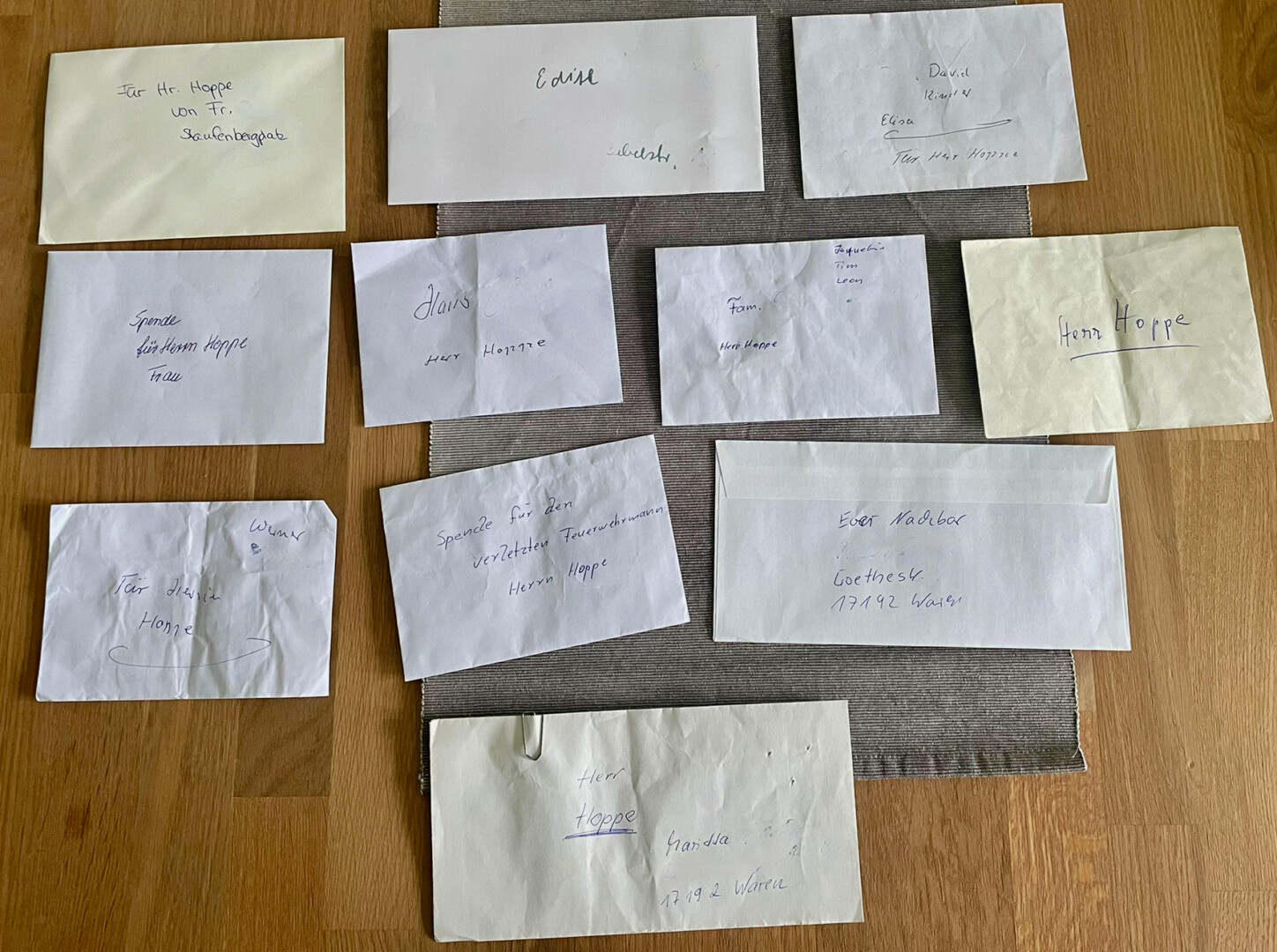 „Ich weiß gar nicht, was ich sagen soll, damit hatte ich nicht gerechnet“, berichtet Michael, der seit über 30 Jahren ehrenamtlich bei der Feuerwehr ist. Was ihn so sprachlos macht? Sowohl im Briefkasten der Warener Feuerwehr als auch beim Ordnungsamt der Stadt lagen in den vergangenen Tagen Briefumschläge mit seinem Namen ‚drauf. Darin beste Genesungswünsche und kleine Aufmerksamkeiten. Und das auch von Menschen, die der Müritzer gar nicht kennt. „Das ist so toll und der Wahnsinn. Ich mache mein Ehrenamt bei der Feuerwehr sehr gerne. Es ist mein Hobby. Dass es mich jetzt so erwischt hat, war einfach großes Pech. Aber ich werde wieder für die Feuerwehr im Einsatz sein“, so der völlig überwältigte Feuerwehrmann.