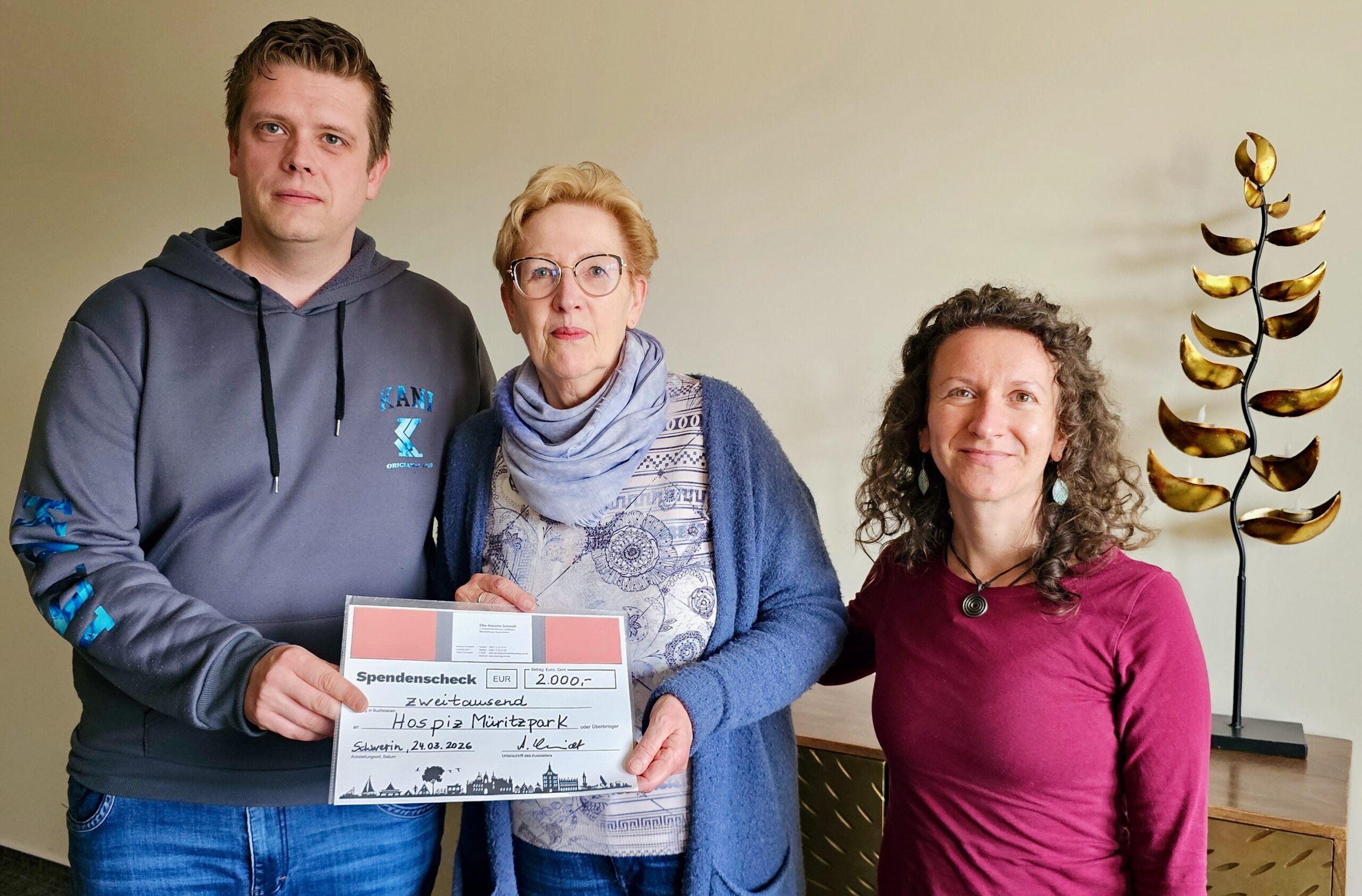 Über diesen Scheck hat sich das Team des Warener DRK-Hospizes wieder sehr gefreut: Vor wenigen Tagen brachte die Landtagsabgeordnete Elke-Annette Schmidt (Linke) eine Spende von 2000 Euro vorbei. Und zwar im Namen des Landtags-Präsidiums. Das Geld stammt aus den Einnahmen des Weihnachtsfestes des Landtages, und wurde auf mehrere Hospize aufgeteilt. „Wir wollen damit auch die wichtige Arbeit der Hospize landesweit sichtbar machen“, heißt es aus dem Büro der Politikerin.