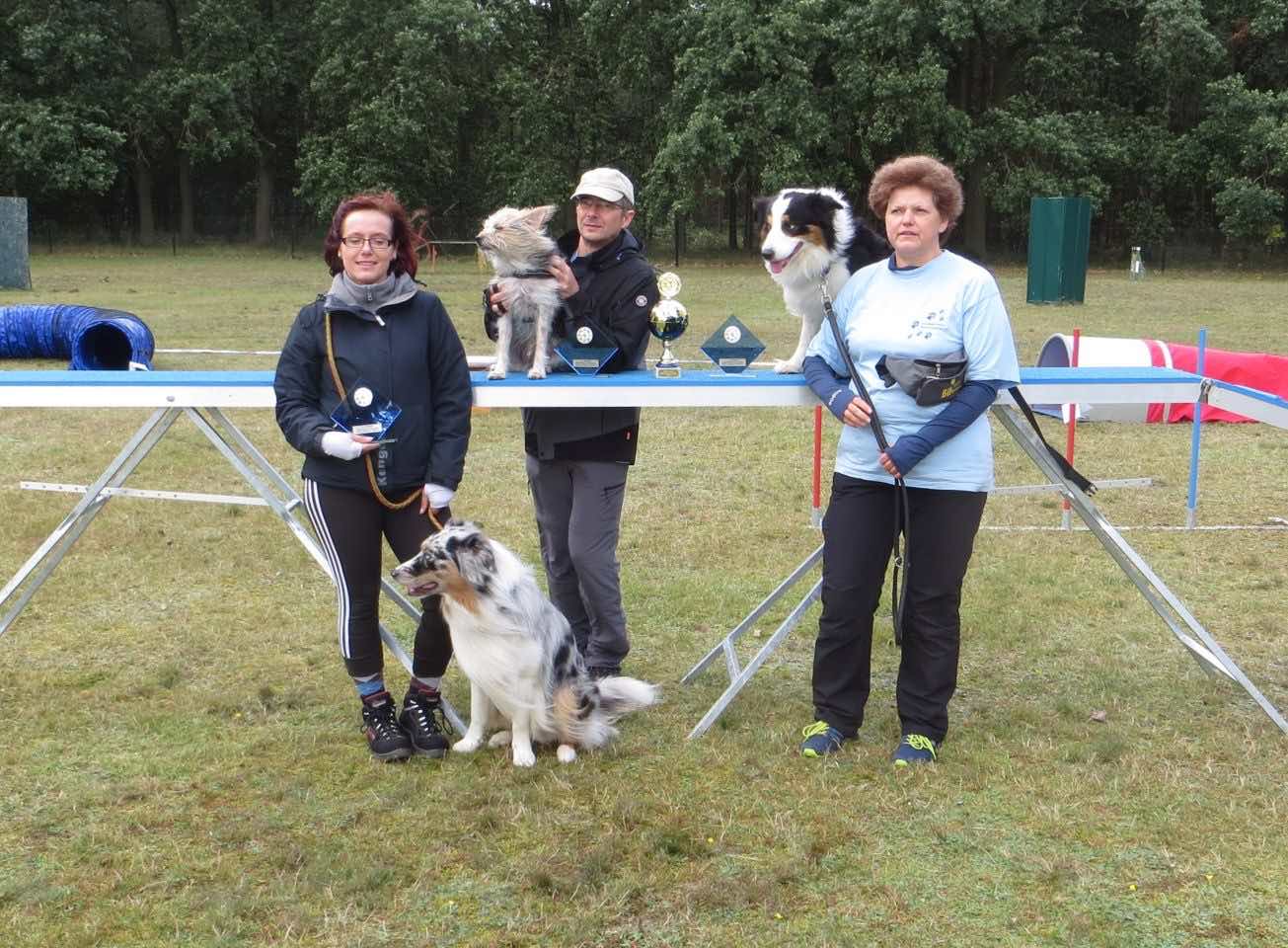Die Warener kamen mit den Bedingungen bei andauerndem Regenwetter am besten zurecht und zeigten ihren hohen Ausbildungsstand auch in den Einzelläufen. So konnten Jennifer mit Yahto, Regina mit Jasper und Andreas mit Schröder auch in drei von fünf Altersklassen die Siegerpokale erringen. Regina und Jasper erreichten dabei die Bestzeit aller teilnehmenden Teams. Das ausgezeichnete Ergebnis rundeten Joseph Budde mit Lina als Vierter sowie Sven Valeske mit Happi und Kathrin mit Kaja jeweils als Fünfte sowie nochmals Kathrin mit Spike als Sechste ihrer Altersklassen ab.