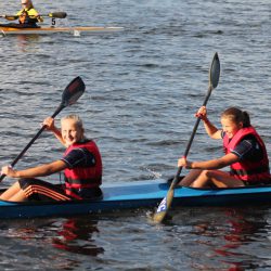 Auch Philipp Schröder war in seiner Altersklasse sehr erfolgreich. Im Gegensatz dazu hingen für die älteren Starter im Jugendbereich die Trauben sehr hoch. Aber auf der Langstrecke über 6000 Meter lieferten sich beispielsweise Friedrich Engels und Laurentius Ramme ein packendes Rennen mit einem Team aus Dänemark – und obwohl diese beiden Starter mehr als doppelt so alt sind wie unsere Jungs, konnte sich das Boot aus Waren in einem packenden Endspurt (nach sechs Kilometern) durchsetzen.