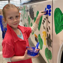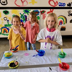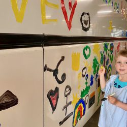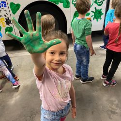Die Ideen wurden ausgetauscht und schnell eine enge Zusammenarbeit angedacht. Erstes gemeinsames Projekt sollte ein bunt bemalter Bus sein. Dieser stand dann gestern in der großen Halle der MVVG bereit, Malfarben, Pinsel, Schwämme, Tücher wurden ausgepackt. Die Kinder und Erzieher, die natürlich mit dem Bus abgeholt wurden, hatten riesigen Spaß beim Verschönern des großen Busses, der bis zu den Sommerferien Schulkinder in der Müritz.Region transportiert.