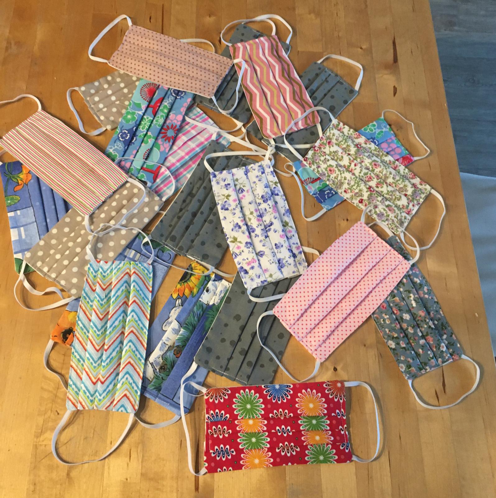 Außerdem weiße Bettlaken sowie bunten Baumwollstoff. Nicht für sich, sondern für andere, für viele weitere Schutzmasken, denn auf den Bestell-Listen stehen noch ganz ganz, viele Namen.