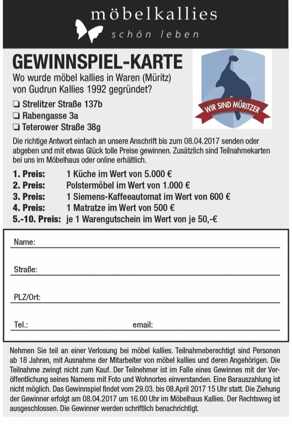 Den Coupon, um am Gewinnspiel teilzunehmen, gibt es hier: Bitte ausdrucken, ausschneiden, ausfüllen und abgeben. Wir drücken die Daumen!