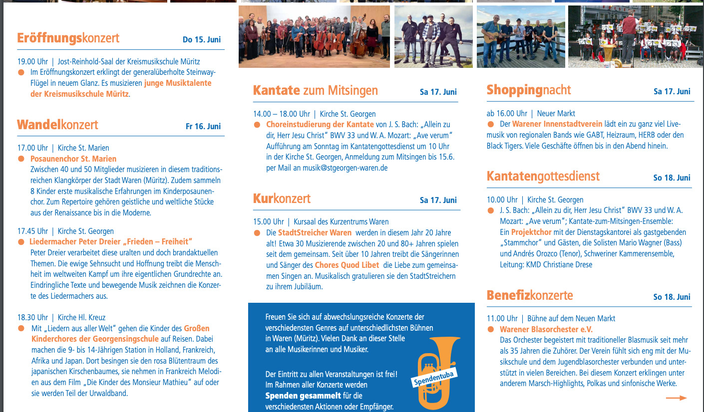 Hier ein Überblick über alle Musik-Höhepunkte ab heute in Waren: