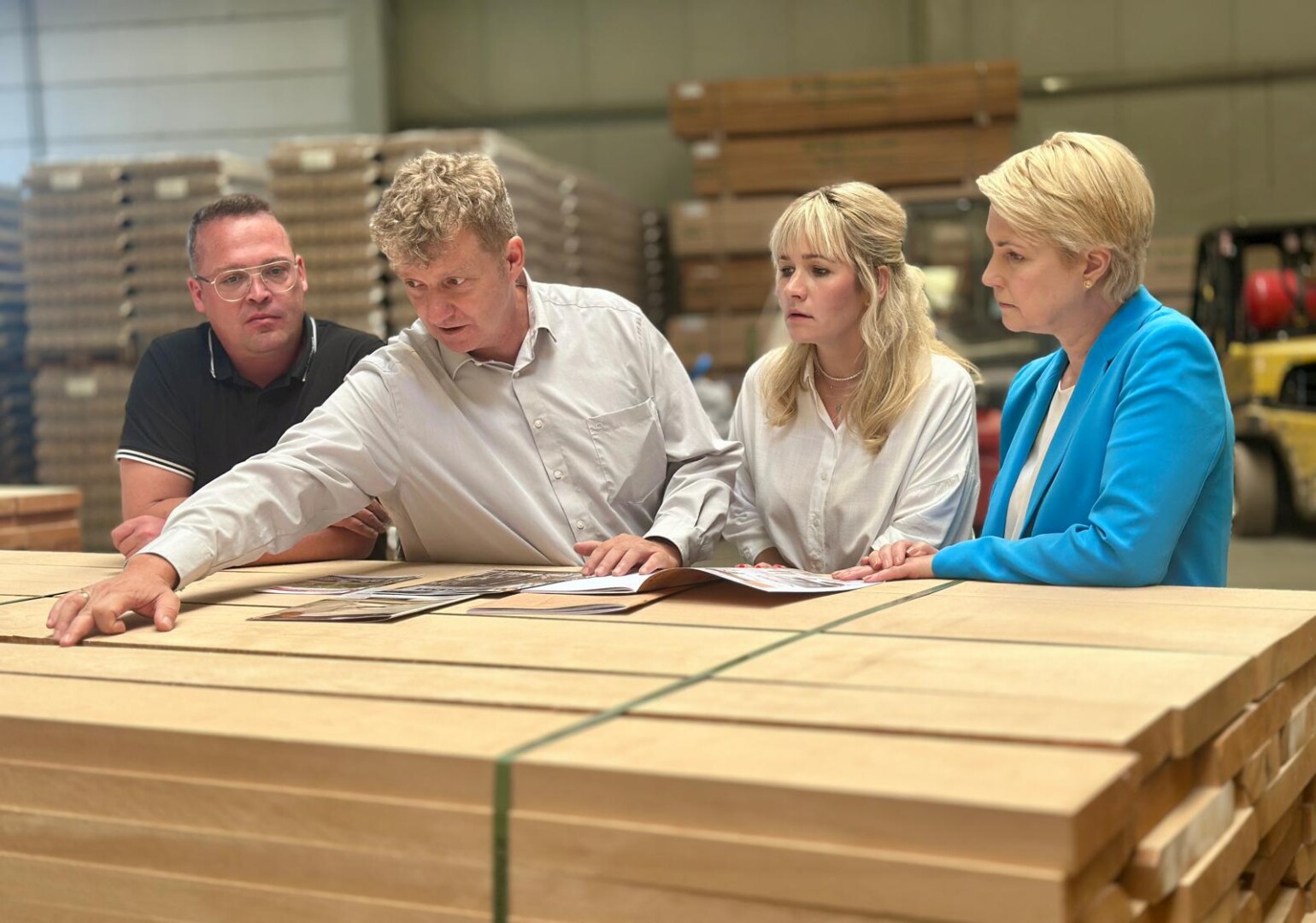 In diesen Tagen war sie gemeinsam mit Ministerpräsidentin Manuela Schwesig (SPD) zu Besuch bei Pollmeier in Malchow. Am Standort werden von den 96 Mitarbeitern jährlich etwa 140 000 Festmeter Buchenholz geschnitten. Das Holz wird an über 70 Länder geliefert. Großabnehmer sind USA, China, Mexiko und die Arabischen Länder. Damit ist das Unternehmen mit dem Werk in Malchow auch immer wieder stark durch die Weltpolitik betroffen (Corona, Zölle usw.) Etwa 50 Prozent des Holzes kommt aus den Wäldern in MV.