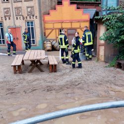 Die Warener Kameraden haben gerade die heutige letzte Vorstellung der Müritz-Saga gerettet. Nicht nur die Bühne stand unter Wasser, sondern auch Nebenanlagen.