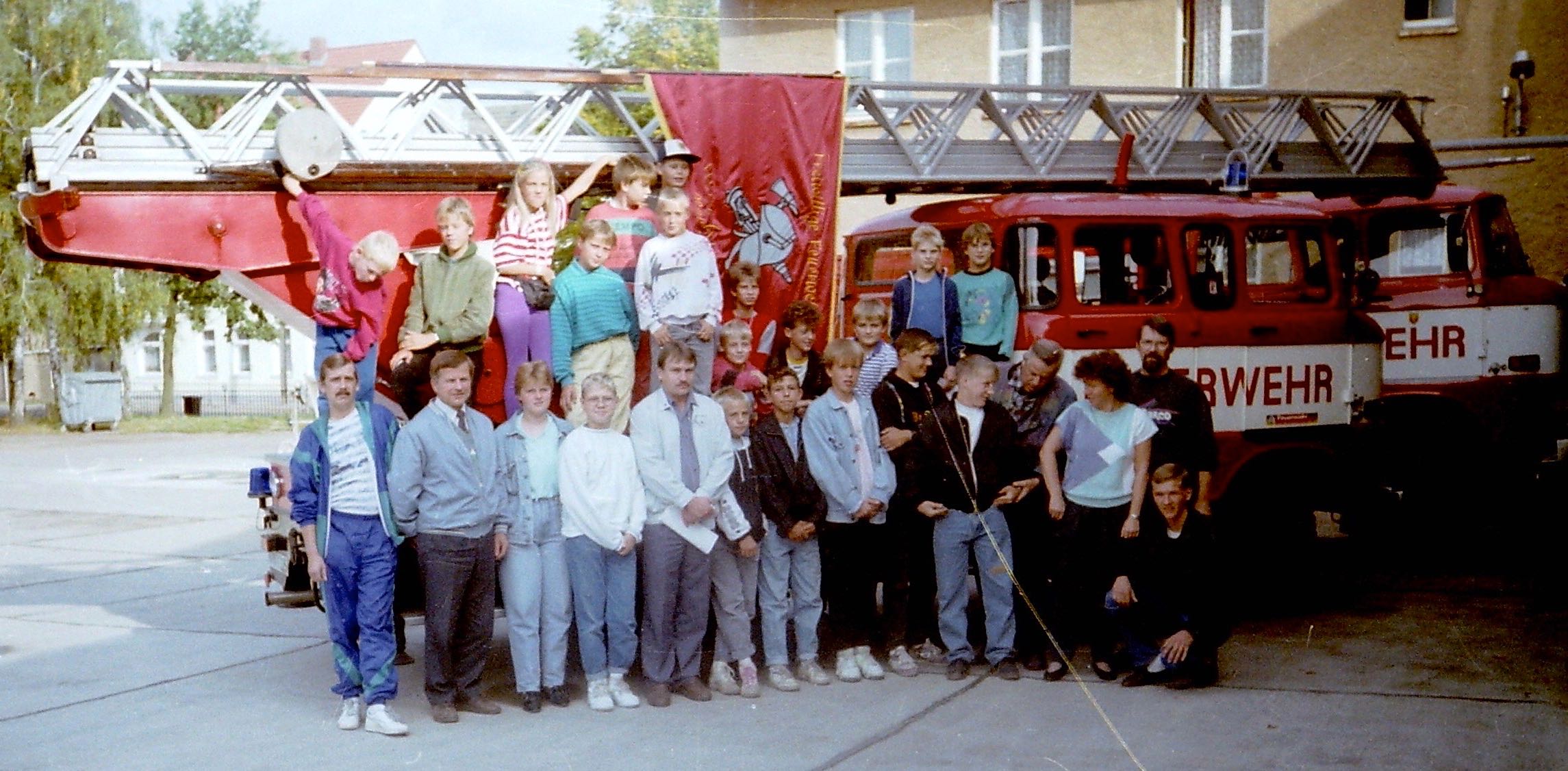Doch zurück zur Jugendfeuerwehr, die am 16. September ihren 25. Geburtstag feiert. Immer freitags ist Treffpunkt am Gerätehaus. Dann geht es sportlich zu; Löschangriffe und Einsätze werden geübt. Doch die Feuerwehr unternimmt noch viel mehr: „ Wir gehen ins Kino, machen Zeltlager, Umweltprojekte, gehen bowlen und bereiten die Kinder auf Wettkämpfe vor. Am Ende der Jugendfeuerwehr gibt es die Leistungsspange,“ erzählt Reimond Kamrath, der vor 25 Jahren gemeinsam mit den noch aktiven Kameraden Martin Berger, Silvio Schossow sowie der Kameradin Diana Siebert der Jugendfeuerwehr beitrat.
