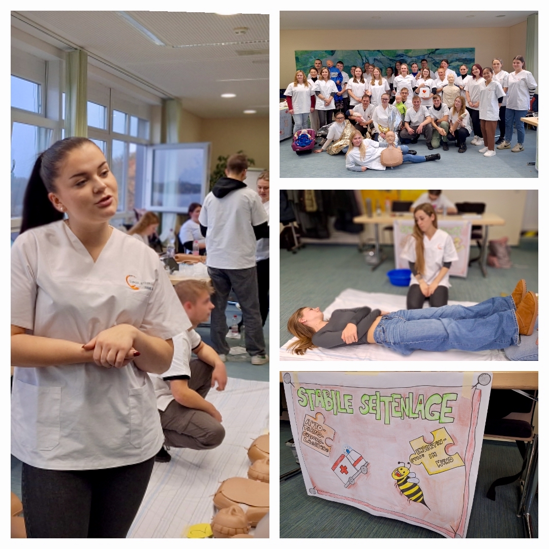 Dabei lernen die Jugendlichen nicht nur lebensrettende Techniken, sondern bekommen auch einen Einblick in einen potenziellen Ausbildungsbetrieb. An zwei Tagen erarbeiteten die Pflegeschüler in Tandems liebevoll gestaltete Anleitungen und Evaluationen, die dann den jüngeren Schülern präsentiert wurden. Eine spannende Reise in die Welt der Pflege und ein starkes Zeichen für die Zukunft des Berufs.