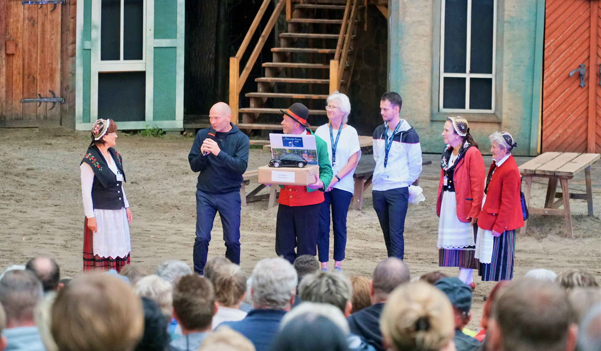 41 Vorstellungen in diesem Jahr – rund 18 000 Zuschauer haben sie erlebt: Die Müritz-Saga hat am Wochenende ihre diesjährige Saison beendet. Es war die 15. und die erste nach zwei Jahren Corona-Pause. Regisseur Nils Düwell zeigte sich im Gespräch mit „Wir sind Müritzer“ mit dieser Besucherzahl zufrieden, die Zukunft der Freiluftspiele ließ er allerdings noch offen. Darüber werde erst in den kommenden Wochen entschieden. Zum Abschied von der diesjährigen Saison haben sich Warens Stadtführer wieder eine Überraschung einfallen lassen. Sie haben auf eine nachgebaute Freilichtbühne ein Auto gebastelt und spielen damit auf den doch eher ungewöhnlichen „Auftritt“ eines verirrten Autofahrers an, der sich vor zwei Wochen auf sein Navi verließ und plötzlich mitten auf der Freilichtbühne stand. „Das sind Geschichten, die wir als Stadtführer sicher immer wieder gerne erzählen“, so Stadtführerin Petra Hakert.