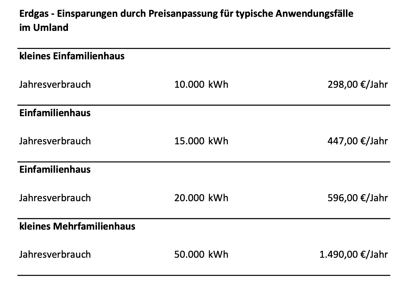 Auch bei Gas sei es gelungen, Kostenvorteile zu erzielen. Hier wirken allerdings insbesondere die erhöhten CO2 Kosten einer stärkeren Preissenkung entgegen. Die Preissenkung für Gas fälle je nach Produkt und Gasnetz-Gebiet unterschiedlich aus und beträgt bis zu 17,1 %.
