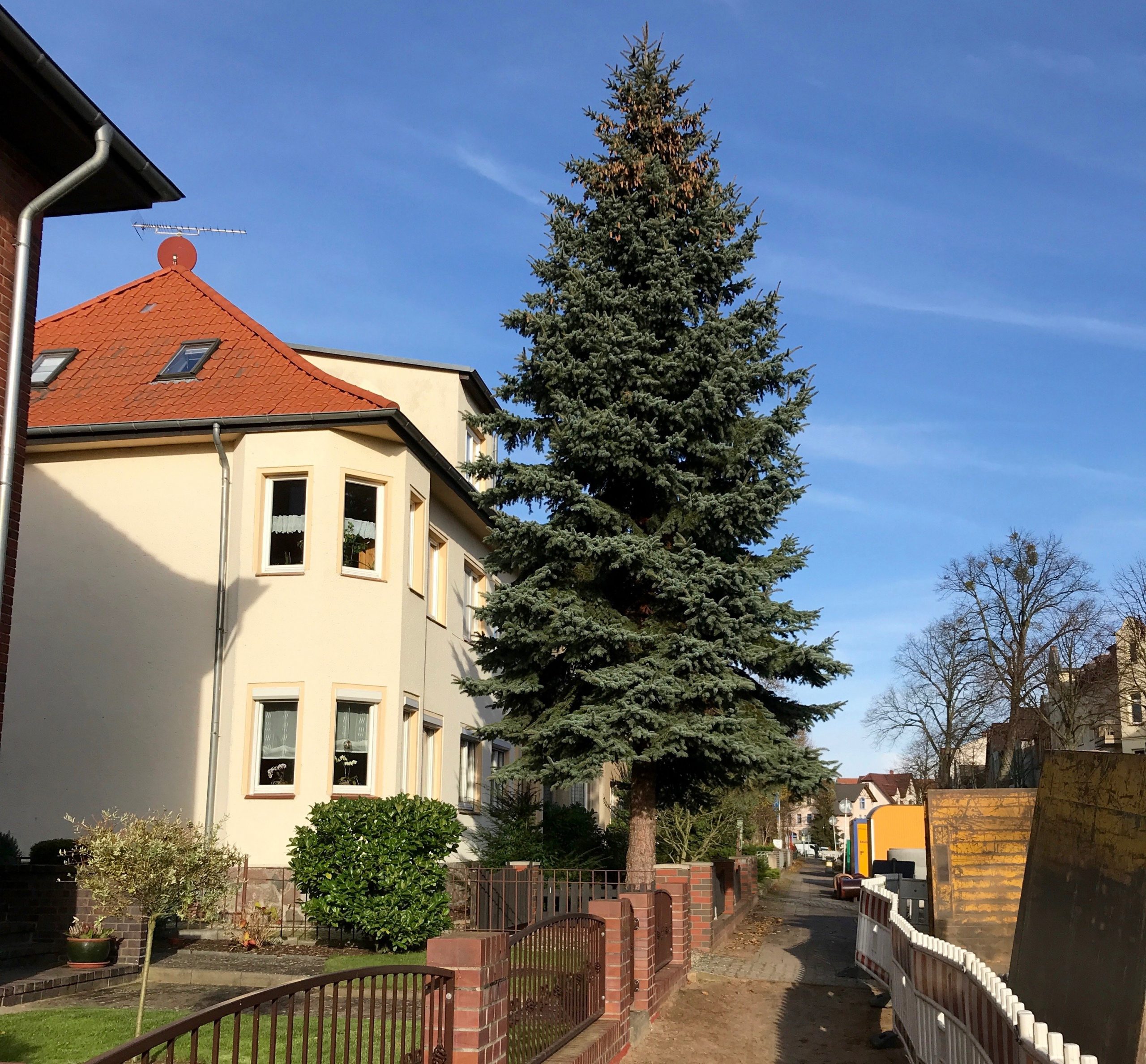 Baum Nummer drei für den Bürgersaal – auch er sollte nicht so mickrig sein – steht jetzt noch auf dem Grundstück der Warener Feuerwehr.