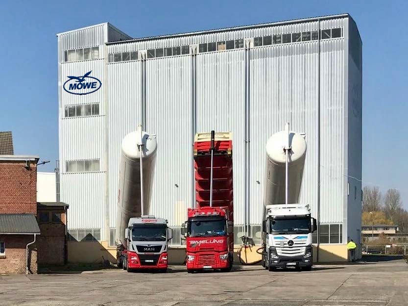 Foto unten: Sechs dieser Tanklaster kommen derzeit teilweise an nur einem Tag, um die Möwe mit Hartweizen zu beliefern.