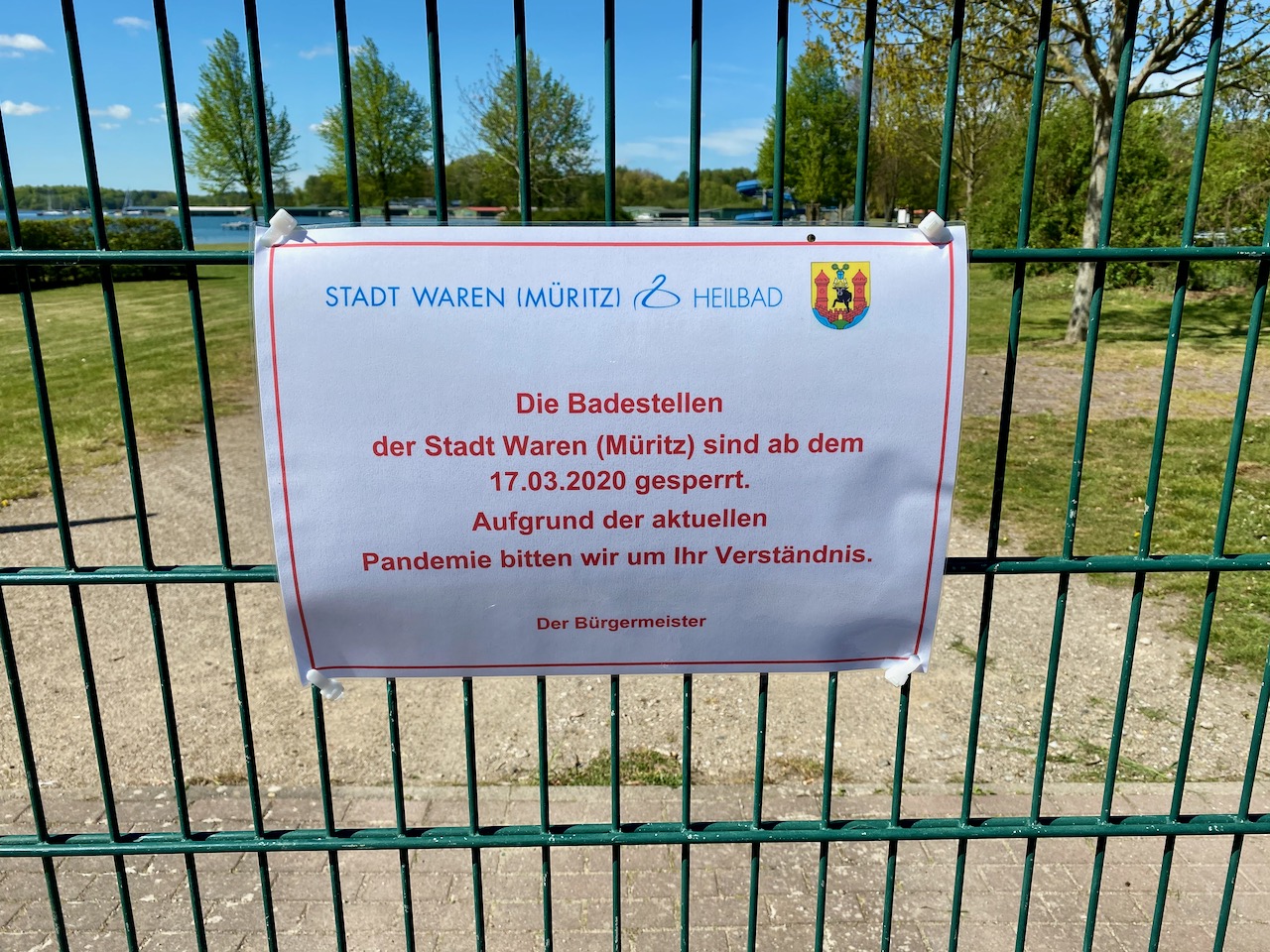 Tja, wie soll man das noch erklären? Die Schließung der Strandbäder war von Anfang an sehr umstritten. Doch vor ein paar Wochen haben es die Einheimischen noch eingesehen: Corona erfordert Einschränkungen, auch wenn schon damals schwer zu verstehen war, warum so ein großer Strand wie das Volksbad in Waren verschlossen wird. Okay. Akzeptiert.