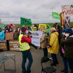 Backhaus will das auch nicht, eher kleinere Anlage mit mehr Tierwohl, aber bezahlbar müsse auch alles bleiben. So kostet ein Kilogramm Schweinefleisch aus „konventioneller Haltung“ derzeit 1,49 Euro, ein Kilogramm aus Bio-Haltung aber 3,52 Euro. So schlägt der Minister vor, an dem abgelegenen Standort etwa drei Kilometer von Alt Tellin entfernt nach der Aufarbeitung wieder eine kleinere, mehr auf das wohl der Tiere gerichtete Anlage aufzubauen, auch damit die Leute wieder Arbeitsplätze haben. Doch davon wollen die Demonstranten nichts hören. Sie fordern den Minister stattdessen zum Rücktritt auf.