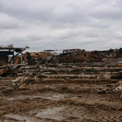 Von den vielen Ställen – jeweils in Doppelreihe – ist kaum noch etwas übrig. Sage und schreibe mehr als 55 000 Ferkel und Muttersauen sind bei dem Großbrand am 30. März getötet worden. Die Kadaver lagen mehrere Wochen, nun sind sie entsorgt. Von der 2010 gebauten Sandwich-Platten-Anlage mit nur einer Brandmauer sind nur noch riesige Schrotthaufen übrig.