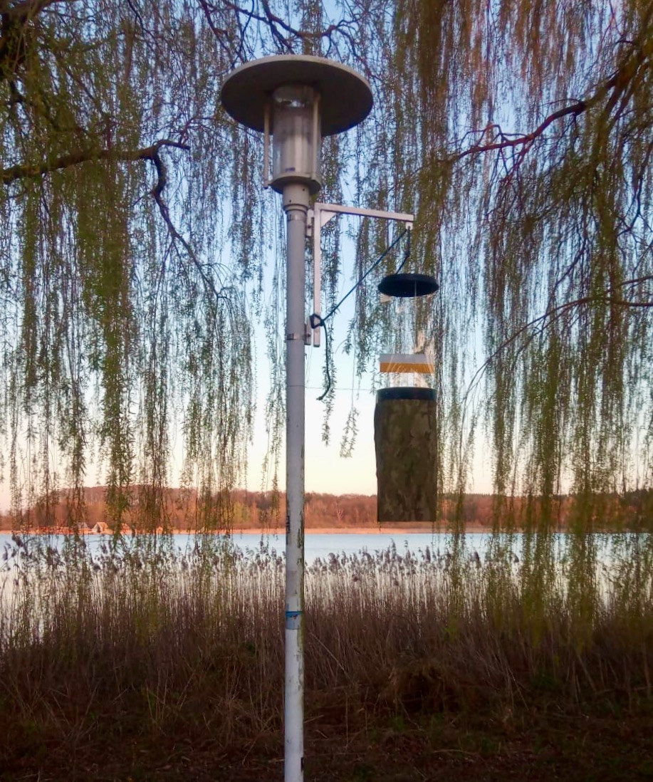 In einigen Kommunen Deutschlands hängen seit diesem Jahr merkwürdige sackähnliche Gebilde an einigen Straßenleuchten. Wer genau hinschaut, findet auch zeltartige Konstruktionen auf den Gewässern in der Nähe dieser Straßenleuchten. Was hat es damit auf sich? Es handelt sich hierbei um Insektenfallen, mit denen das Projekt „Artenschutz durch umweltverträgliche Beleuchtung“ dem nächtlichen Insektensterben auf der Spur ist. Weltweit nimmt die nächtliche Himmelshelligkeit jährlich um zwei bis sechs Prozent zu, mit unabsehbaren Konsequenzen für Ökosysteme. Straßenbeleuchtung hat einen nicht unbedeutenden Anteil daran, aber auch die private Beleuchtung wie Werbeschilder, Garten- und Balkonbeleuchtung nimmt rasant zu. Künstliches Licht aber kann nachtaktive Fluginsekten stark beeinträchtigen. Welche Insekten besonders betroffen sind und welche Art von Beleuchtungsdesign weniger negative Auswirkungen zeigt, wird im Rahmen des Projektes in den Städten Krakow am See (Mecklenburg-Vorpommern) und Fulda (Hessen), sowie den Ortschaften Neuglobsow und Gülpe (beide Brandenburg) untersucht.