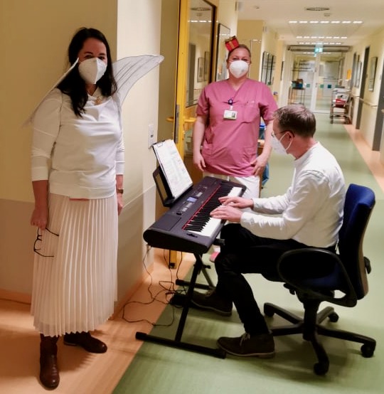 Nicht alle Menschen können Weihnachten zu Hause verbringen, sondern müssen auch über die Festtage im Krankenhaus behandelt werden. Um es ihnen leichter zu machen und trotz ihrer Erkrankungen ein wenig Freude und festliche Stimmung zu bringen, wollten Ärzte und Schwestern im MediClin Müritz-Klinikum ihre Patienten am gestrigen Heiligabend eigentlich mit einem Ständchen aufmuntern. Das ging aus hygienischen Gründen nicht, aber die Patienten wurden trotzdem überrascht. Die Chefärztin der Kinder- und Jugendklinik, Dr. Kathrin Hake, schlüpfte kurzerhand ins Engelskostüm. Gemeinsam mit dem Warener Pastor Life Rother brachten sie drei Stunden lang weihnachtliche Klänge auf die Stationen und hatten auch Geschenke für die kleinen und großen Kranken dabei. Ihr Dank: Tränen der Rührung bei den Patienten. Auch die Covid-Stationen, auf denen derzeit besonders viel zu tun ist, wurden nicht ausgelassen.