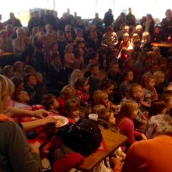 Volle Hütte im Warener Autohaus Schlingmann. Dort ist der Nikolaus zu Gast. Außerdem schauen die Kleinen ganz gebannt das Puppenspiel „Hänsel und Gretel“