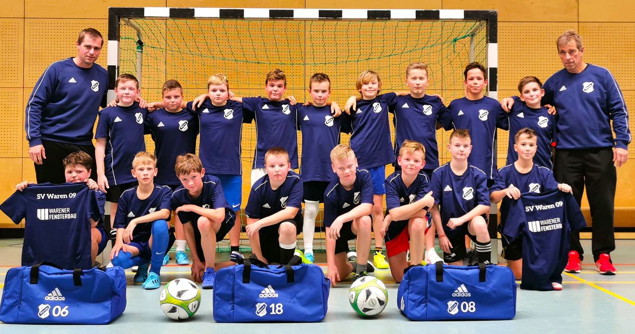 Überraschung für die Kicker der D2-Jugend des SV Waren 09: Das Team von Trainer Toralf Schult belegt derzeit Platz 4 der Kreisliga und steht – ohne Niederlagen in Vor- und Zwischenrunde – heute im Finale der Hallenkreismeisterschaften. In dieser Woche gab es von der Firma Warener Fensterbau GmbH ein vorgezogenes Weihnachtsgeschenk in Form neuer Trainingsbekleidung und Sporttaschen im Vereinsdesign.