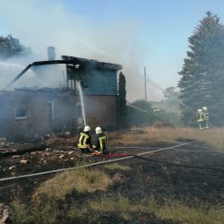 Das Wohnhaus brannte vollständig nieder. Etliche Kameraden mussten vor Ort medizinisch versorgt werden. Bei knapp 40 Grad kamen viele Einsatzkräfte an ihre Grenzen.