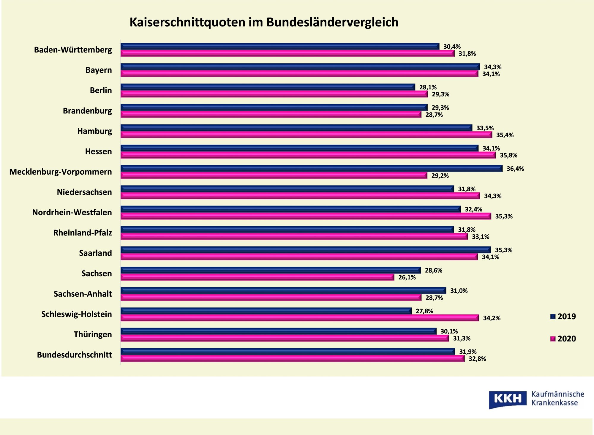 Die KKH verzeichnet seit mehreren Jahren hohe Kaiserschnittquoten und begrüßt deshalb, dass im vergangenen Jahr eine erste medizinische Leitlinie zu diesem Thema herausgegeben wurde. Die neue Handlungsempfehlung soll Ärzten bei der Beratung für oder gegen einen Kaiserschnitt als Unterstützung dienen. Die KKH hofft, dass dadurch der Kaiserschnitt als Geburtsmethode noch sensibler eingesetzt wird und Schwangere eine bessere Aufklärung erhalten. Denn auch wenn der Eingriff routinemäßig in den Krankenhäusern durchgeführt wird, sollte er nur aus medizinischen Gründen und nach sorgfältiger Aufklärung und Abwägung erfolgen.