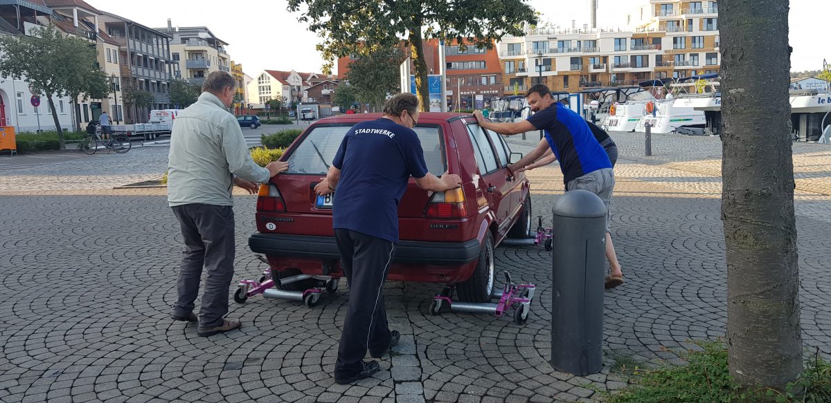 Der traditionelle „Tag der Stadtwerke“ am ersten Samstag im August ist schon wieder Geschichte. Heike Seemann von der Kur- und Tourismus GmbH und Leiterin des Bürgersaales, möchte noch einmal danke sagen. Unter anderem dem Ordnungsamt der Stadt, das schon in den frühen Morgenstunden dafür sorgte, dass der „Tag der Stadtwerke“ überhaupt stattfinden konnte. „Bevor das Fest beginnen kann, muss natürlich der Platz am Hafen für das Festzelt und die vielen Aktionen frei sein. Drei Tage zuvor weisen entsprechende Schilder auf das Parkverbot hin, die zuweilen aber leider übersehen oder ignoriert werden. Wie schön, dass man sich auf das Ordnungsamt der Stadt Waren verlassen kann, das nicht nur für „Baufreiheit“ sorgte, sondern am frühen Morgen selbst mit Hand anlegte, um das letzte störende KFZ umzusetzen – siehe Foto. Der „Tag der Stadtwerke“ konnte so pünktlich mit zünftiger Blasmusik starten und war wieder ein tolles Event für Groß und Klein. Vielen Dank seitens des Veranstalters an alle Mitdenker, Helfer und Akteure.“
