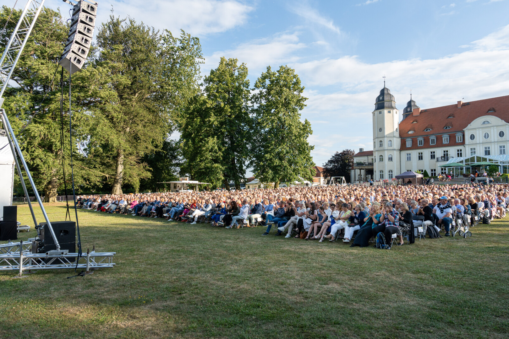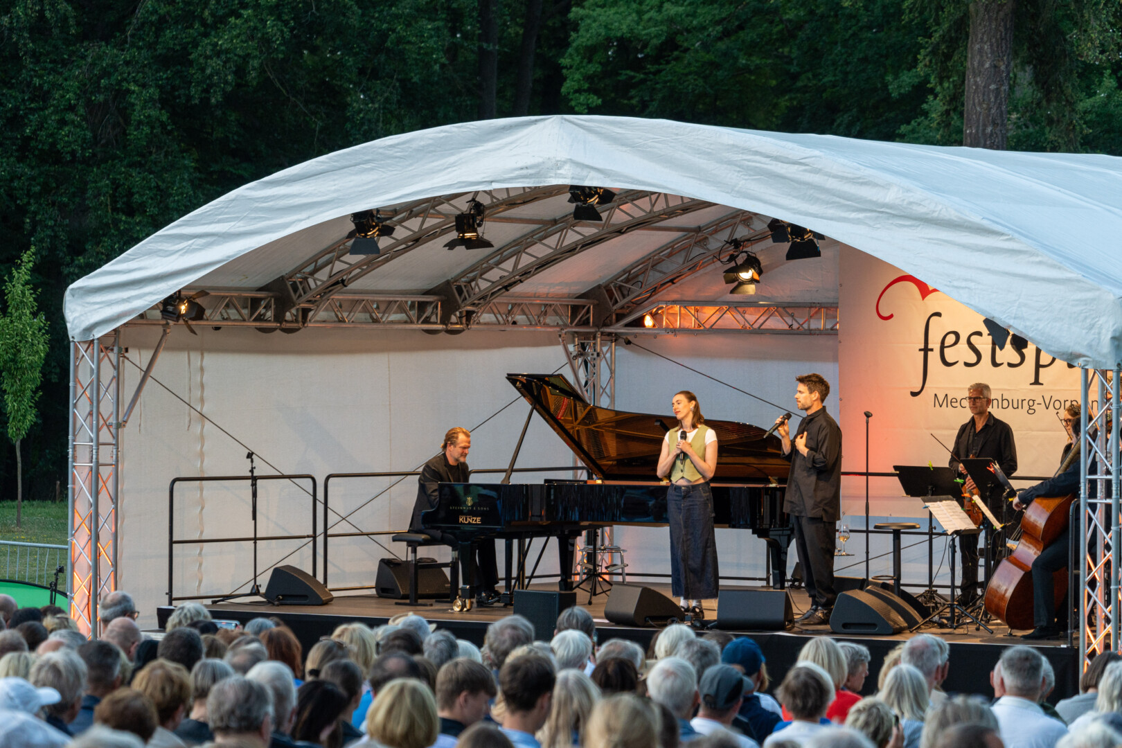 Am Wochenende ist der historische Park des Schlosses Fleesensee einmal mehr zur Kulisse eines außergewöhnlichen musikalischen Abends geworden. Im Rahmen der Festspiele Mecklenburg-Vorpommern erlebten rund 2.000 Gäste ein Open-Air-Konzert der besonderen Art – ein inspirierendes Zusammenspiel von Klassik, Pop, Jazz und Singer-Songwriter-Klängen. Im Zentrum des Abends stand die Begegnung zweier herausragender Künstlerpersönlichkeiten: Der international gefeierte Pianist Sebastian Knauer und Johannes Strate, Frontmann der Band Revolverheld. Mit viel Charme und Charisma führten sie durch das Programm, kamen ins Gespräch mit dem Publikum und überzeugten mit musikalischer Vielseitigkeit. Unterstützt wurden sie von Jazzpianist Martin Tingvall, der unter anderem zwei Songs aus dem neuen Album der The Voice of Germany-Gewinnerin Malou Lovis einfühlsam begleitete.