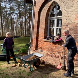 Früher hat man es „Subbotnik“ genannt, heute einfach nur Arbeitseinsatz: So einen „Subbotnik“ gab’s am Wochenende rund um den Wasserturm auf dem Warener Nesselberg. Mitglieder der Genossenschaft  „Bewahren Ferienhaus eG“, die sich vor zehn Jahren gegründet hat und das historische Gebäude letztlich vor dem Verfall rettete, waren angereist, um das Areal wieder „saisonfein“ zu machen. Da packen alle, die es irgendwie einrichten können, mit an.