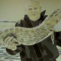 Eine Chefärztin begegnet bei einer Ausstellung einem anderen Chefarzt ihres Krankenhauses. Das klingt zunächst nicht sonderlich ungewöhnlich. Ist es aber. Denn während die Chefärztin der Intensivstation des Müritz-Klinikums, Dr. Astrid Francke, in natura bei der Ausstellungseröffnung im „Kleinen Meer“ steht, betrachtet sie ihren Kollegen, den Chefarzt der Urologie, Dr. Andreas Baars, auf einem Bild. Der war nämlich sozusagen Model für die Künstlerin Daniela F. Lüers und wurde mit seinem großen Fischfang verewigt und jetzt eben ausgestellt.
