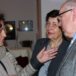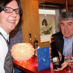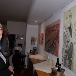 ist nicht die einzige Besonderheit des gestrigen Abends. Denn mit der Veranstaltungsreihe „Kultur & Genuss“ möchte das Restaurant „Kleines Meer“ ein neues Event an der Müritz etablieren und kann sich schon mal über eine gelungene Premiere freuen. Zum gestrigen Auftakt schauten immerhin rund 40 Besucher vorbei, ließen sich von der Malerin Daniela F. Lüers die Ausstellung „Sommer, Sonne, Mecklenburg“ näher bringen und von Job von Nell vom Pfälzer Weingut Karl Schaefer erlesenen Weine erklären. Dazu gab’s Käsehäppchen, insbesondere aus der Region. Beispielsweise schmeckte der Kuhkäse vom Siebengiebelhof hervorragend zum „Sonnentropfen“ Riesling und der Kraaser Ziegenkäse zum Cabernet Blanc.
