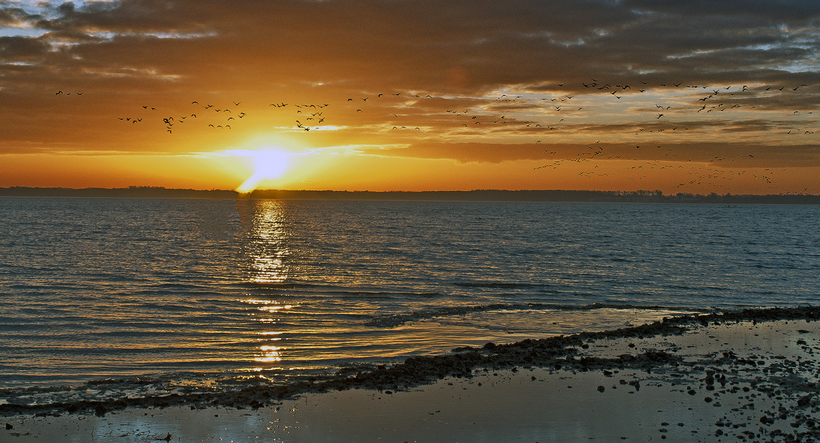 Die Gänse genießen den Sonnenaufgang in Ludorf.