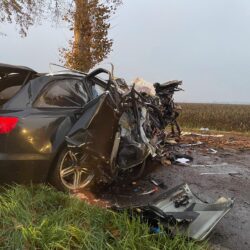 Sofort eilten mehrere Rettungswagen, Notärzte und die Feuerwehr zur Unfallstelle. Jede Hilfe kam jedoch zu spät. Beide Männer (Fahrer 42) verstarben noch an der Unfallstelle. „Die Unfallstelle war ein riesiges Trümmerfeld. Das Auto war extrem verformt. Das war auch für uns kein alltäglicher Einsatz“, berichtet Steffen Müller, Wehrführer der Feuerwehr Wittstock.