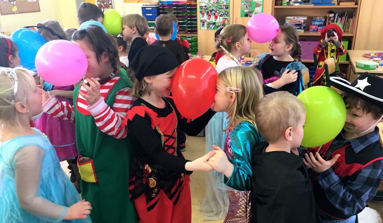 Die Räume ausgestattet mit Girlanden, Ballons, Luftschlangen, Süßigkeiten und Musik: Über 400 Schüler und ihre Lehrer feierten eine große Faschingsparty.