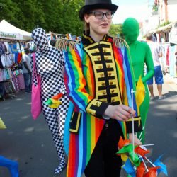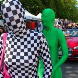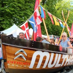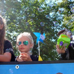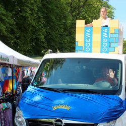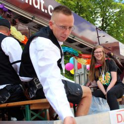 Wohl die bunteste und auch lauteste Truppe – das VW-Autohaus Kühne. Junge Damen in Ganzkörperanzügen  verteilten Süßes, auf einem Wagen präsentierten sich die erfolgreichen Nachwuchs-Kanuten des MSC, und auf dem Abschlepper ging die Party richtig ab. Unüberhörbar.