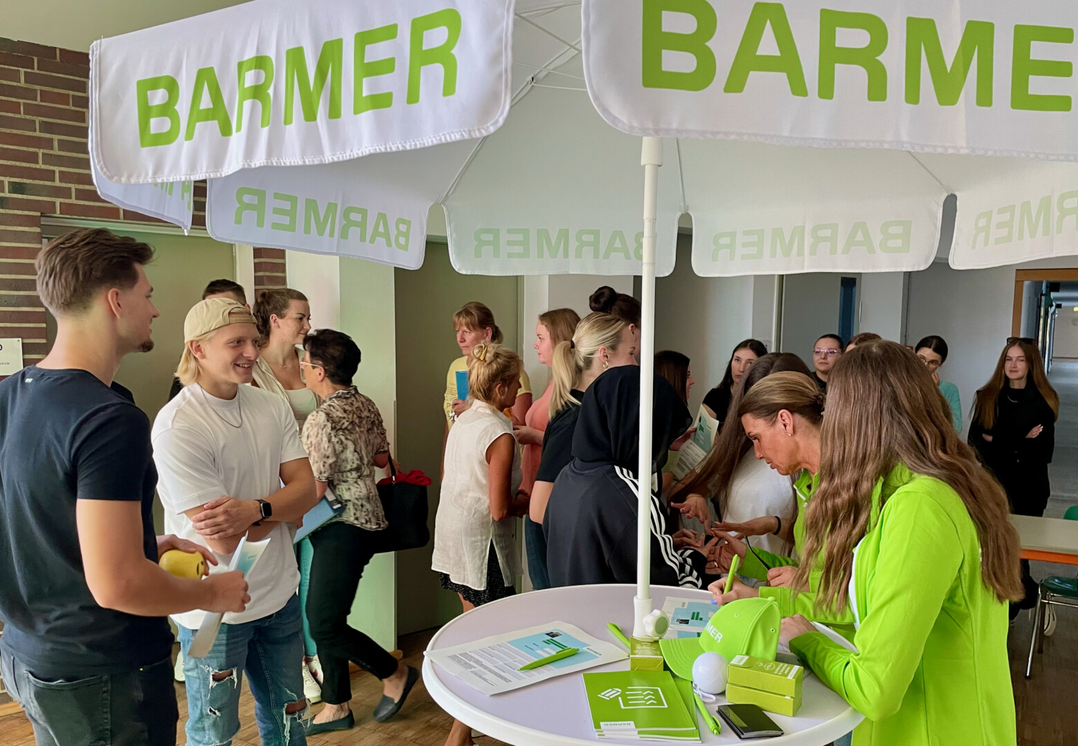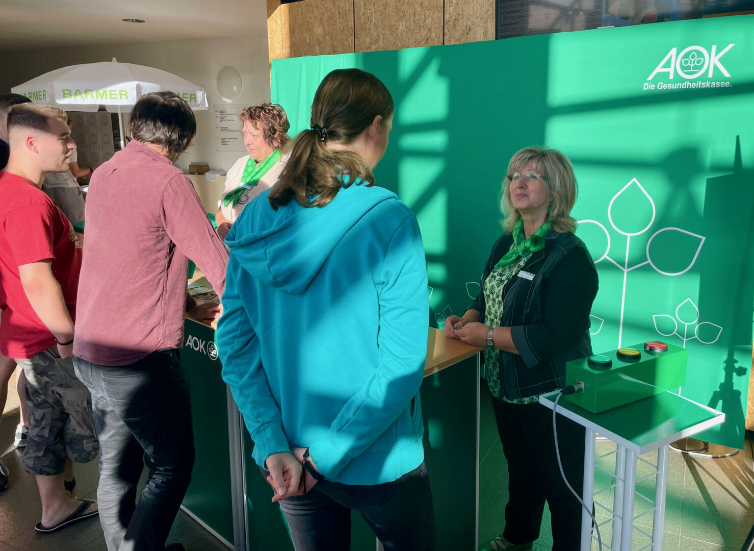 Spannung zudem am Stand der Barmer. Die Warener Mitarbeiter der Krankenkasse um Chef Mario Homuth hatten eine „Twall“ im Gepäck – eine interaktive Reaktionswand, die richtig Spaß macht. Für den mit Abstand „schnellsten Tipper“ – er schaffte 177 Anschläge/Minute – 0 Fehler gab es ein kleines Dankeschön. Der Zweitplatzierte kam auf 151 Anschläge.