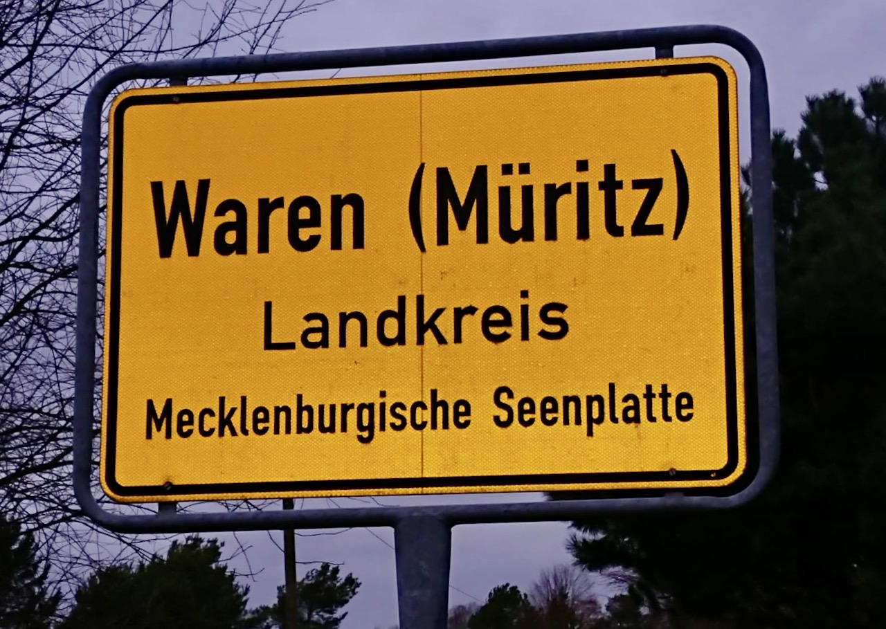 Etwas übersichtlicher sieht es in Waren an der Müritz aus. Hier wurde das „Staatlich anerkannte Heilbad“ schon als Extra-Schild dazu an den Pfahl montiert, aber auch nicht an jedem Stadteingang. Nun müsste ja eigentlich „Heilbad Waren (Müritz)“ oder besser „Bad Waren an der Müritz“ und deren plattdeutsche Entsprechung „Wohren an de Müritz“ auf dem Schild Platz finden. Durchaus eine ansprechende Denkaufgabe.