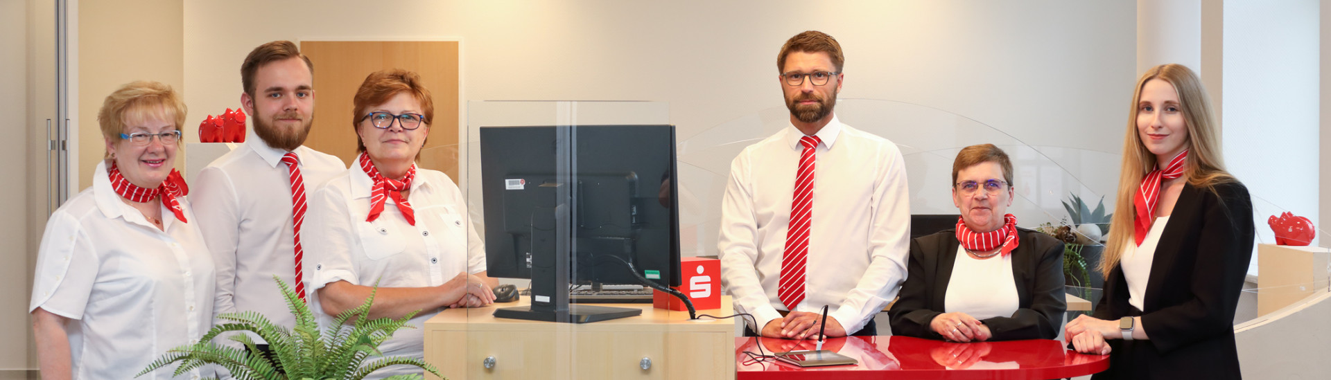 Foto oben: Martin Twieg, Leiter der Filiale Röbel (3. v. r.) und sein Team