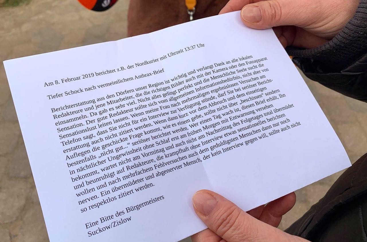 Zislows sichtlich mitgenommener Bürgermeister setzt sich nach einer Zeitungsveröffentlichung, die vor allem angebliche Aussagen seiner Frau betrifft, mit einem offenen Brief zur wehr.