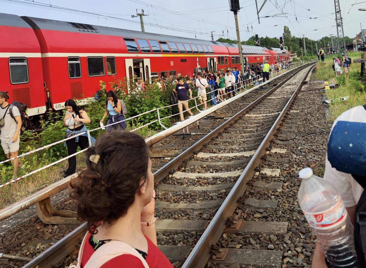 Keine gute Reise: Gestern ist der RE5 von Rostock nach Berlin bei Birkenwerder evakuiert worden, weil es einen Stromausfall gab. Der Zug war maßlos überfüllt, durch den Stromausfall ging es nicht weiter, und die Klimaanlage ist ausgefallen.