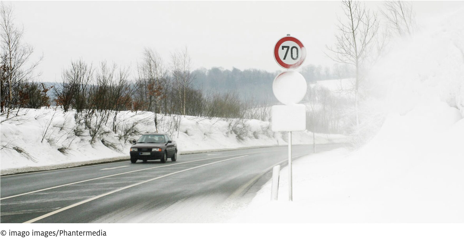 Es gibt jedoch auch Verkehrsschilder, die nicht aufgrund ihrer Form erkannt werden können. Dazu gehören unter anderem dreieckige Gefahren- sowie die runden Verbots- oder Beschränkungszeichen. Sind diese also zugeschneit, kann nicht erwartet werden, dass man ihre Bedeutung noch erkennt und man sie befolgt. Unabhängig davon gilt für Geschwindigkeiten: Sie müssen den Straßen-, Verkehrs- und Sichtverhältnissen angepasst sein.