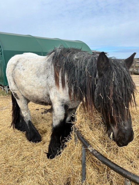 Die Stute (12 Jahre alt, Stockmaß 1,53 Meter) ist schmiede- und verladefromm, halfterführig und sehr zahm.