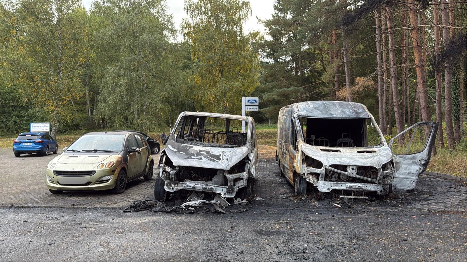 Heute früh 1.30 Uhr sind auf dem Gelände eines Neubrandenburger Autohauses zwei Transporter in Flammen aufgegangen. Obwohl die Kameraden der Berufsfeuerwehr schnell vor Ort waren. brannten beide Fahrzeuge komplett aus. Ein Auto, das in unmittelbarer Nähe stand, wurde durch die entstandene Hitzeentwicklung ebenfalls stark in Mitleidenschaft gezogen. Die Kriminalpolizei hat die Ermittlungen auf Grund des Verdachtes der Brandstiftung aufgenommen und den Einsatz eines Brandursachenermittlers angeregt. Der Gesamtschaden wird vom Eigentümer auf rund 62.000 Euro geschätzt.