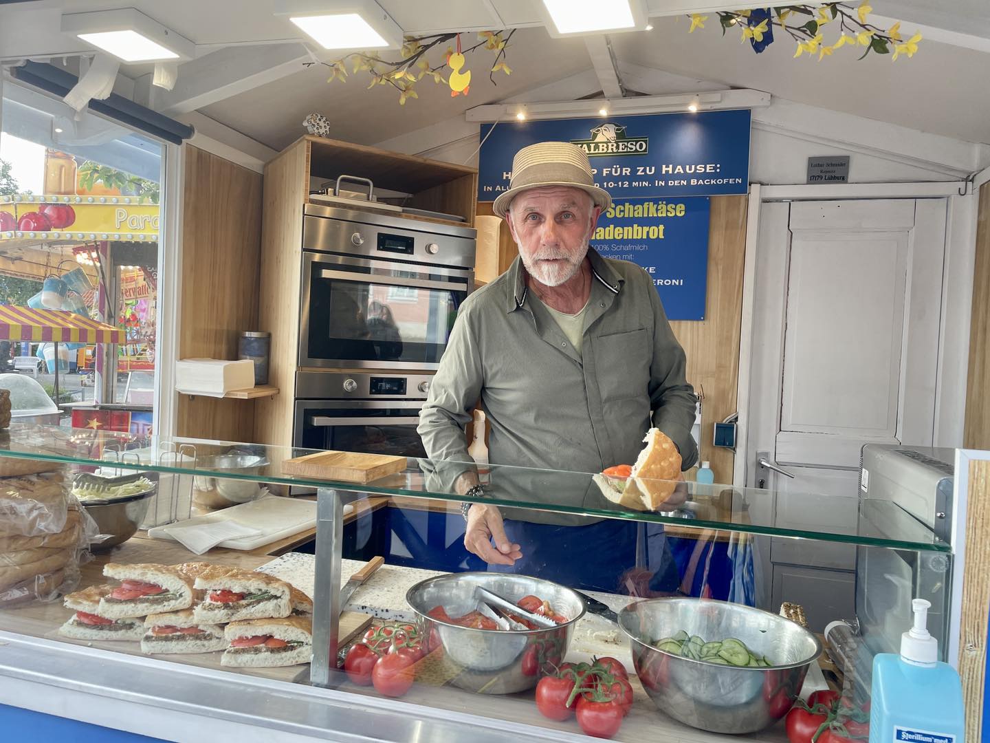 Lothar Schneider mit seinem leckeren Schafskäse im Fladenbrot – er verwöhnt die Besucher schon zum 20. Mal – und Alleinunterhalter Sveto König, der mit dem „Veräppeln“ der Passanten die Lachmuskeln ordentlich strapaziert.